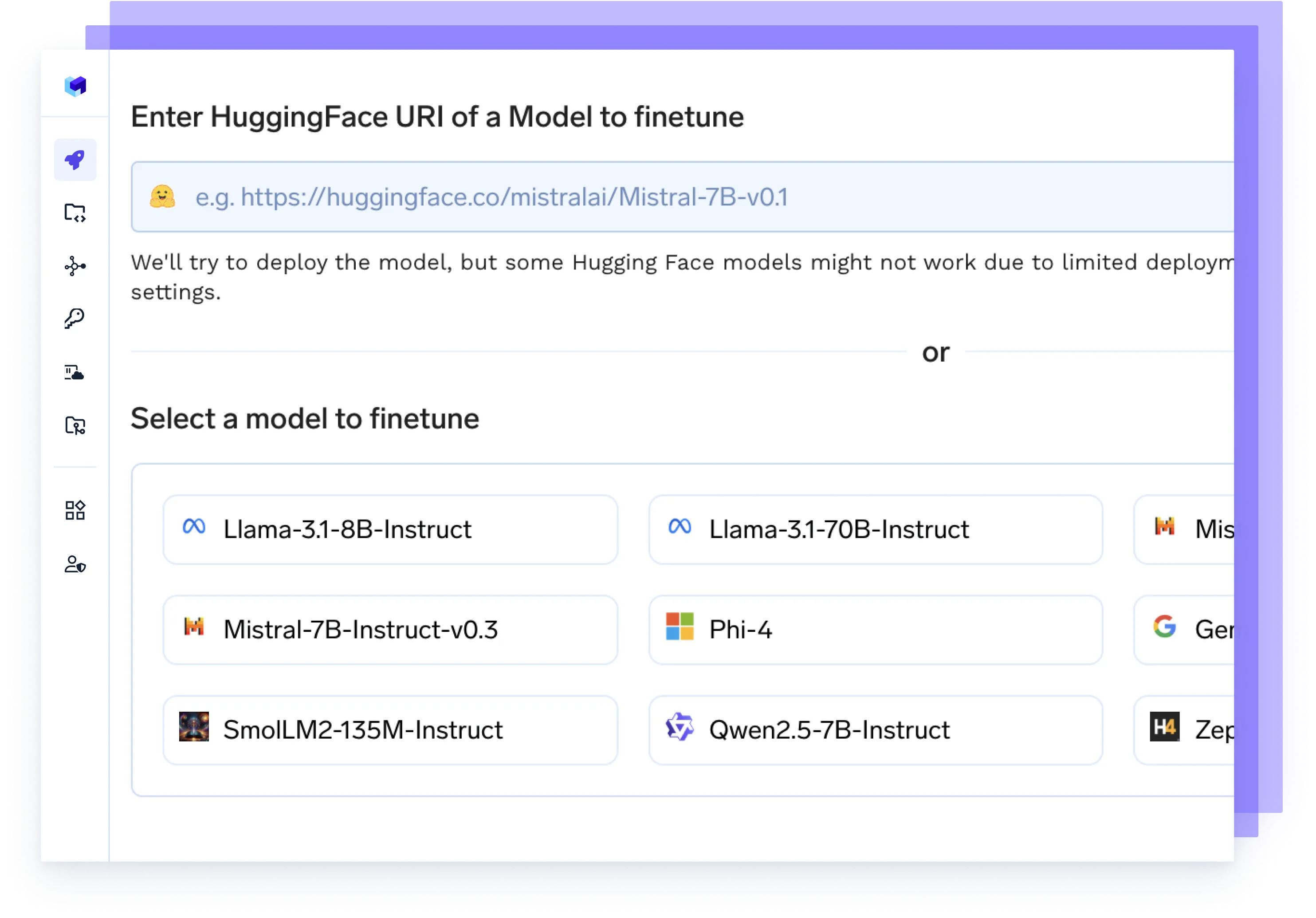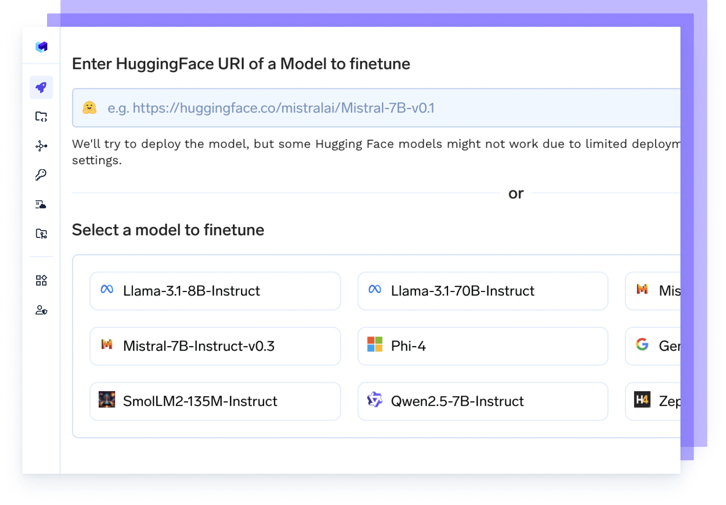 Launch fine-tuning jobs on your data, track experiments, and deploy updated checkpoints directly to production â all in one flow.